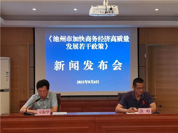 近日,市政府辦印發(fā)了《池州市加快商務(wù)經(jīng)濟高質(zhì)量發(fā)展若干政策》(池政辦〔2021〕20號)。為提高政策的公眾知曉率和參與度,8月6日上午,市商務(wù)局聯(lián)合市政府新聞辦召開政策新聞發(fā)布會。安徽日報、安徽廣播電視臺、池州日報、市廣播電視臺等共9家省駐池和市直媒體參加會議。